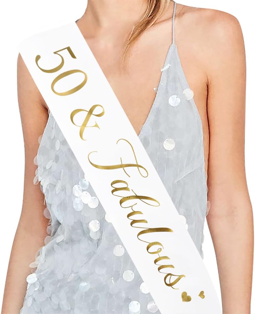 Source: www.amazon.com Amazon.com: 50 And Fabulous Sash, 50Th Birthday Sash Fabulous 50 Sash Birthday Party Favors, Supplies And Decorations (White/Gold) : Home & Kitchen