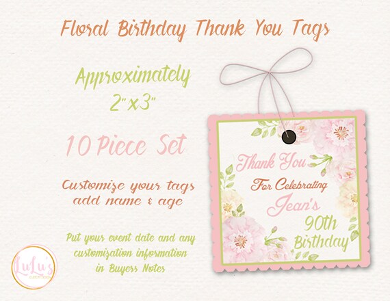 Source: www.etsy.com Pink Floral 90Th Birthday Party Thank You Tags 90Th Birthday - Etsy Canada