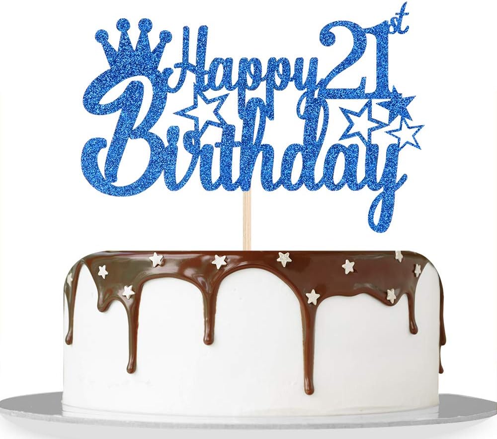 Source: www.amazon.com Amazon.com: Blue Glitter Happy 21St Birthday Cake Topper For Cheers To 21 Years/Girl Boy's 21 & Legal - Hello 21 Birthday Anniversary Party Decorations Supplies - High Grade Color : Grocery & Gourmet Food