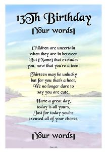 Source: www.amazon.co.uk 13Th, 16Th, 18Th, 21St, 30Th, 40Th, 50Th, 60Th, 70Th Personalised Birthday Poem Gifts For Him, Her, Son, Daughter, Mum, Dad, Grandad, Nanny - Custom Happy Birthday Keepsake Gift Presents : Amazon.co.uk: Handmade