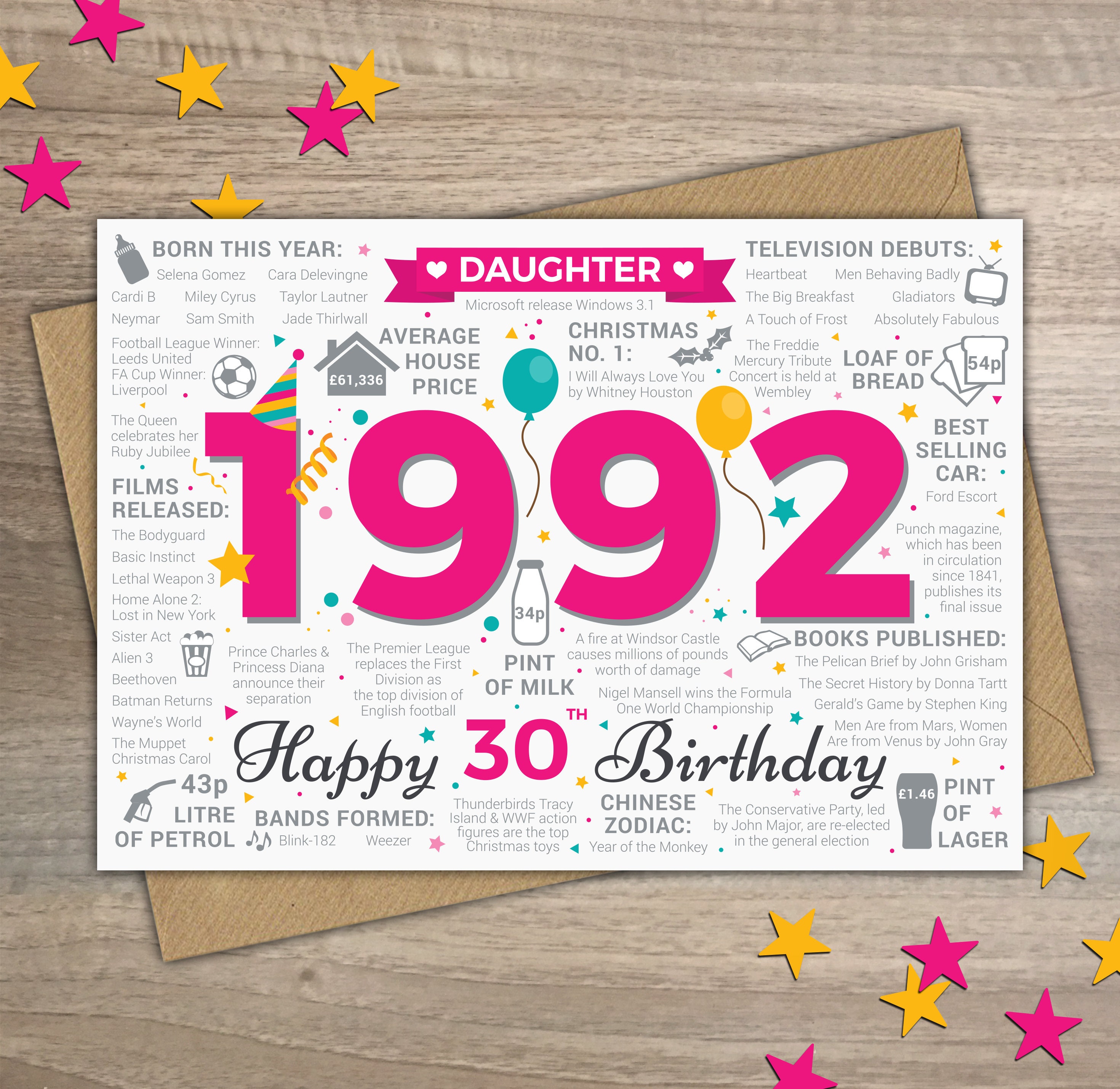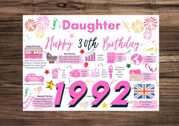 Source: www.etsy.com 30Th Daughter Happy Birthday Greetings Card Born In 1992 - Etsy