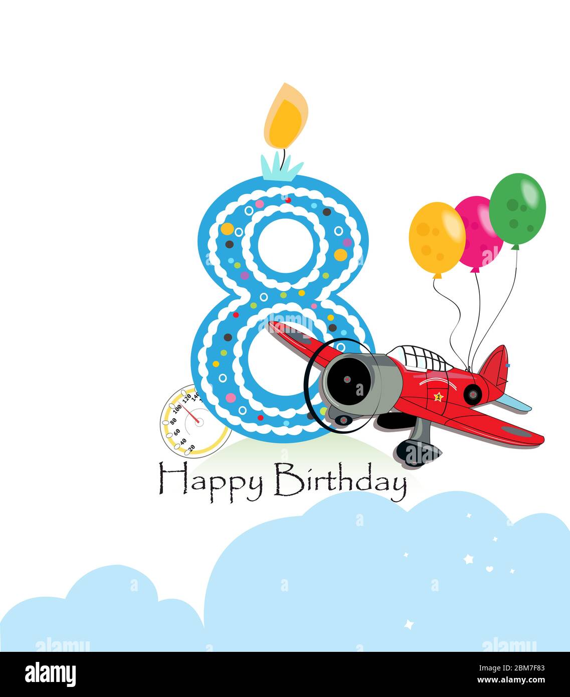 Source: www.alamy.com Eighth Birthday Greeting Card. Air Plane And Balloon Happy Birthday Boy Greeting Card Stock Vector Image & Art - Alamy