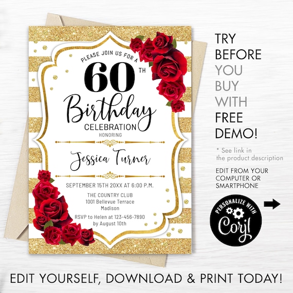 Source: www.etsy.com 60Th Birthday Invitation Instant Download Digital Template. - Etsy Hong Kong
